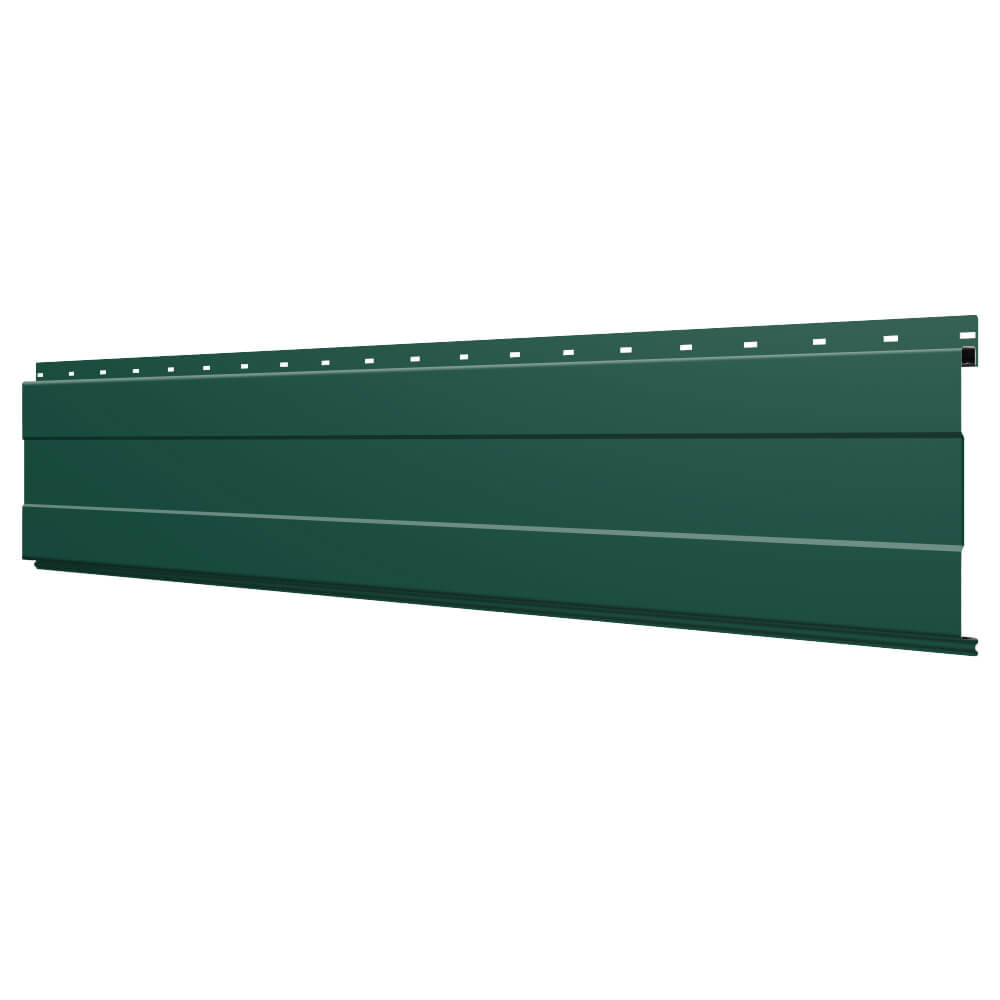 Линеарная потолочно-стеновая панель с ПОЛОСОЙ усиленная цвет RAL6005 Зеленый Мох применяется в качестве софитов для подшивы крыши, наружной и внутренней отделки потолков, стен, фронтонов фасада дома в Вологде.